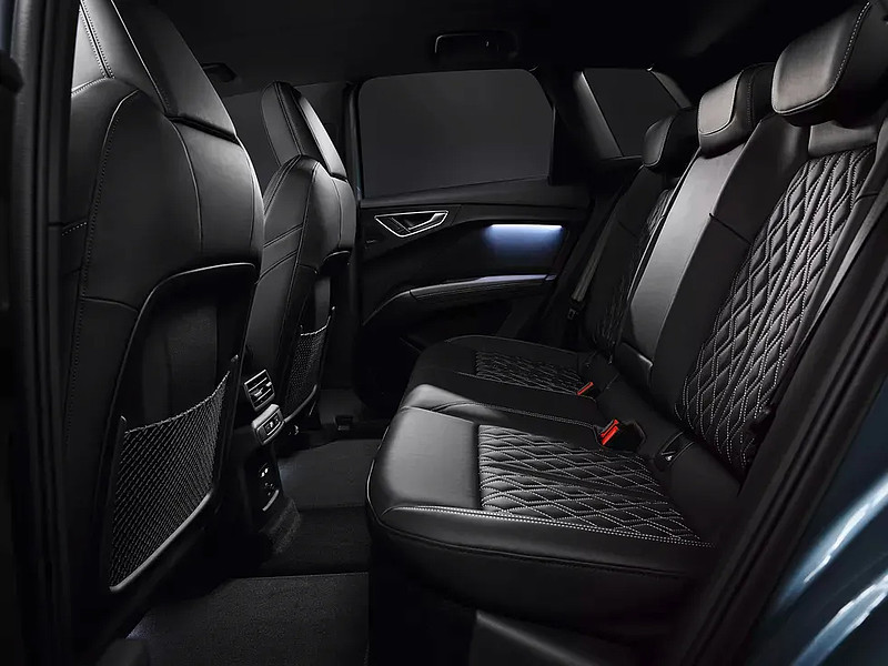 奥迪Q4 e-tron长宽高分别为4590/1865/1613毫米,因为基于大众MEB电动化平台,空间也是一大亮点,而且地台平坦,后排座椅比前排高出7厘米,但后排乘客的头部、腿部空间仍然非常舒适。