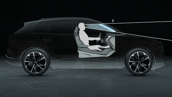 奥迪Q4 e-tron的亮点在于,此次搭载的是一套动态AR-HUD,其前挡风玻璃处的图像生成单元,可以通过独立可调解反射镜,将生成图像反射到近距离和远距离两块区域。