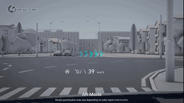 在车道辅助模式中,AR图像会协助驾驶员让汽车保持在车道中央,一旦车辆在没有开启转向灯的情况下偏航,AR图像会在真实车道线处以红色线条的形式发出视觉警告。