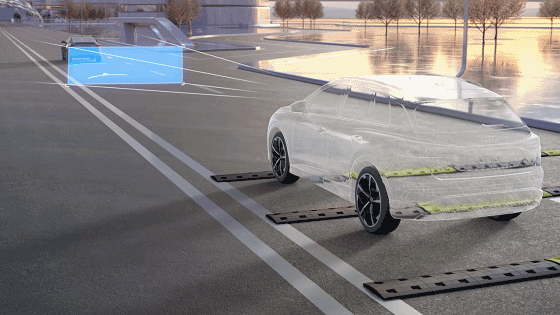 为了实时获取车辆真实位置及车外环境,Q4 e-tron上搭载了前后轮速度传感器、转向传感器、车头中程雷达、车前摄像头、GPS等设备。