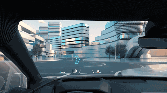 车速、道路限速、车辆状态等相对静态的信息,会显示在视距3米区域,而与实景结合的导航、自适应巡航、车道辅助显示、前方交通情况预测等AR图像,则会显示在视距10米区域。