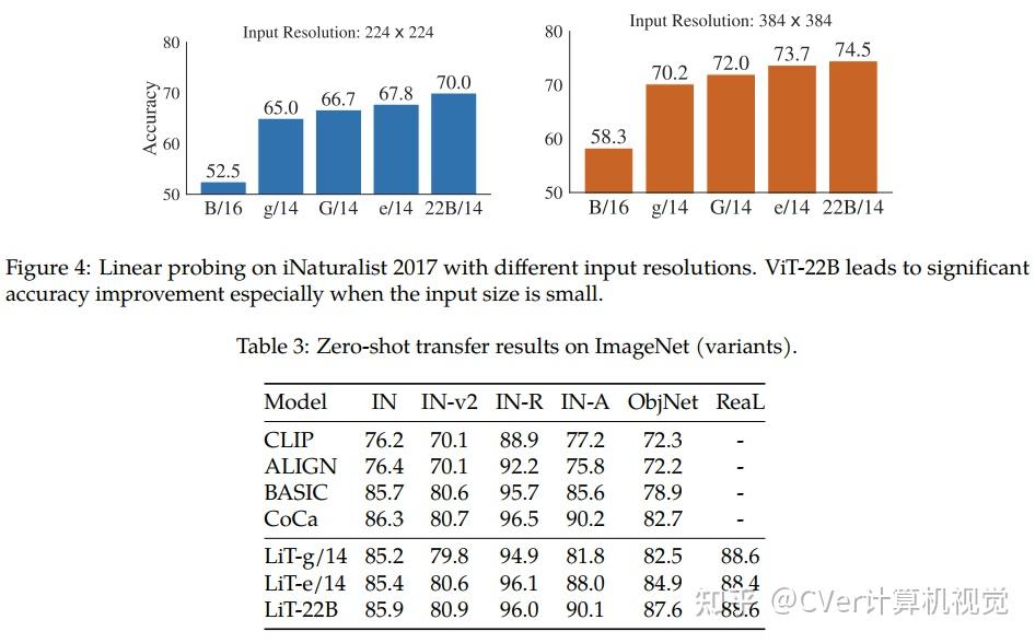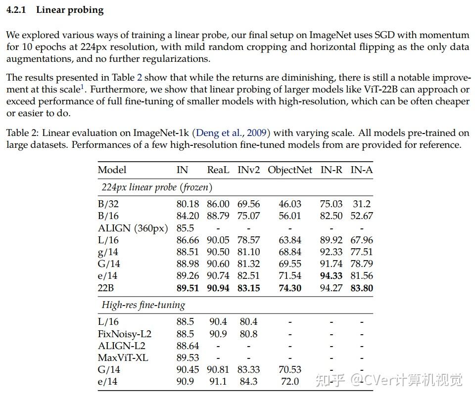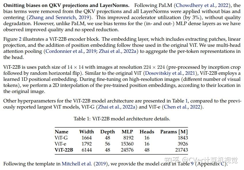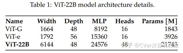 我们提出了一种22B参数ViT(ViT-22B)的高效稳定训练方法,并对所得模型进行了各种实验。
