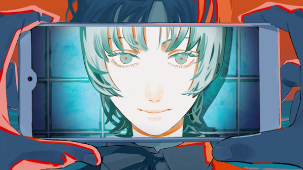 而媒介间性则以前文所说的奇妙的方式,将复数个媒介(手机、电影、游戏、电脑)的边界叠到一起。观众迷失在难以区别叙述分层的边界中,视线时不时会从故事里剥离出来,揣测此时的画面,自己到底是身处哪个视像空间之中。自我指涉则从遇到绘梨之后开始出现,此时优太(人物“我”)进入画面,观众作为观看主体被消磨了,改为被观看的客体,即放映机给出的画面。镜头给到绘梨和父亲之后,对话的态度、创作的过程的真实性都被置于怀疑状态,尤其是父亲在拍摄的过程说出的好几段完全相反的观点。
