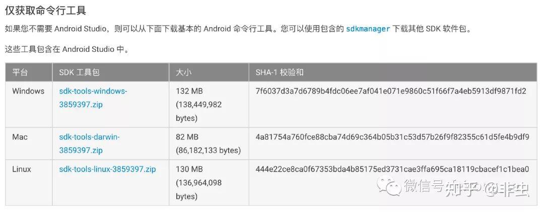 Android SDK是以zip压缩包的形式提供给开发人员的。首先到Android官网下载最新版本的SDK,下载地址为: https:// developer.android.com/s tudio/index.html 。如图所示,点击下载链接即可。