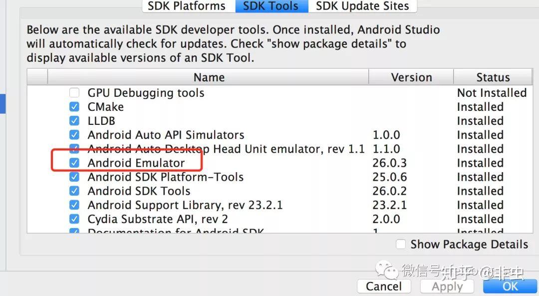 中确认本机已经安装模拟器必须的镜像文件。如图所示:
