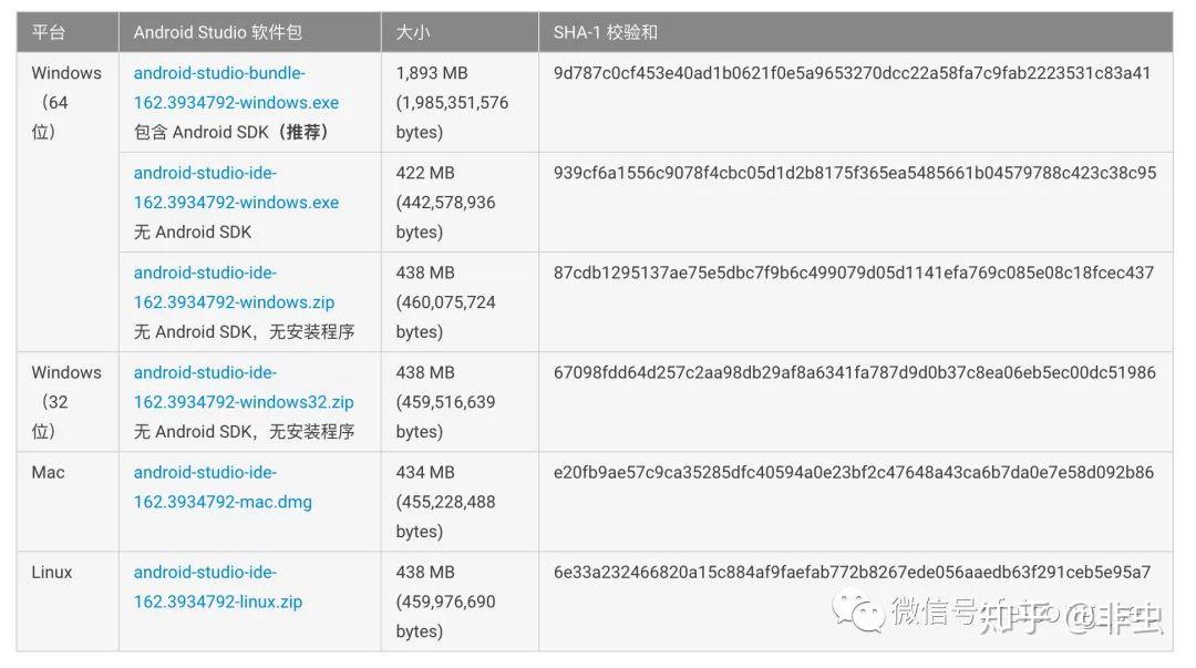 。Windows平台分为包含了Android SDK的exe安装版本,与不包含Android SDK的exe安装版本及zip压缩包版本。如图所示: