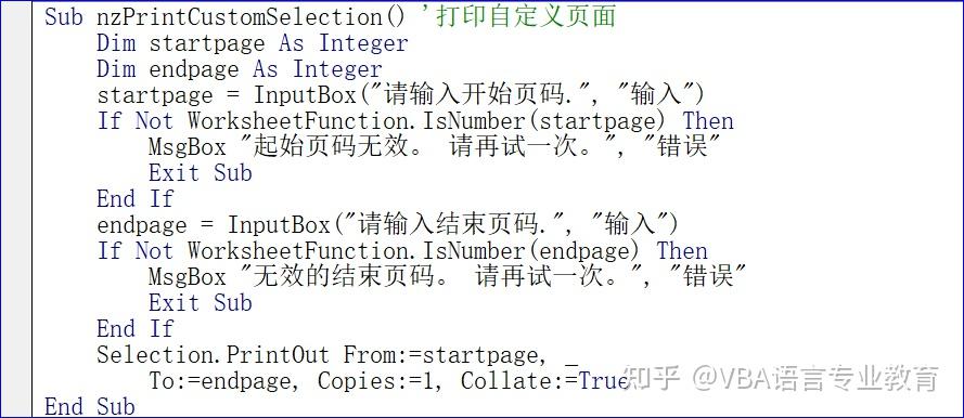 VBA是面向对象编程的语言,博大精深,这里我会分享些一些有用的VBA案例,暂时将这部分命名为《VBA精选案例代码(汉英)》和我的教程相互补充。有很多朋友咨询英语和VBA的关系,为了大家更好的领会和掌握VBA中用到的一些英语,这些案例中,我会用英语和汉语同时发布。今日的内容:VBA打印选择范围及自定义页面