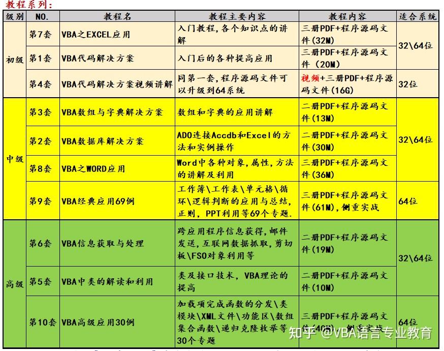 对于学员而言,如果您是入门阶段可以打包选择7.1.3.9教程,第7是入门,第1是入门后的提高,第3字典是必备的VBA之精华,第9是实用的典型案例讲解;如果您有了一定的VBA基础可以根据自己的需要,进行教程的选择及工具的利用,提供的程序文件就如一座大型的代码库支持着大家的工作;工具系列共分两类:一类是容易些的YZ系列,一类是较难些的NZ系列,这些工具是大家学习VBA的好帮手,其中NZ系列工具还有专门版本资料,提供给已按部就班学习完我所有教程的学员。