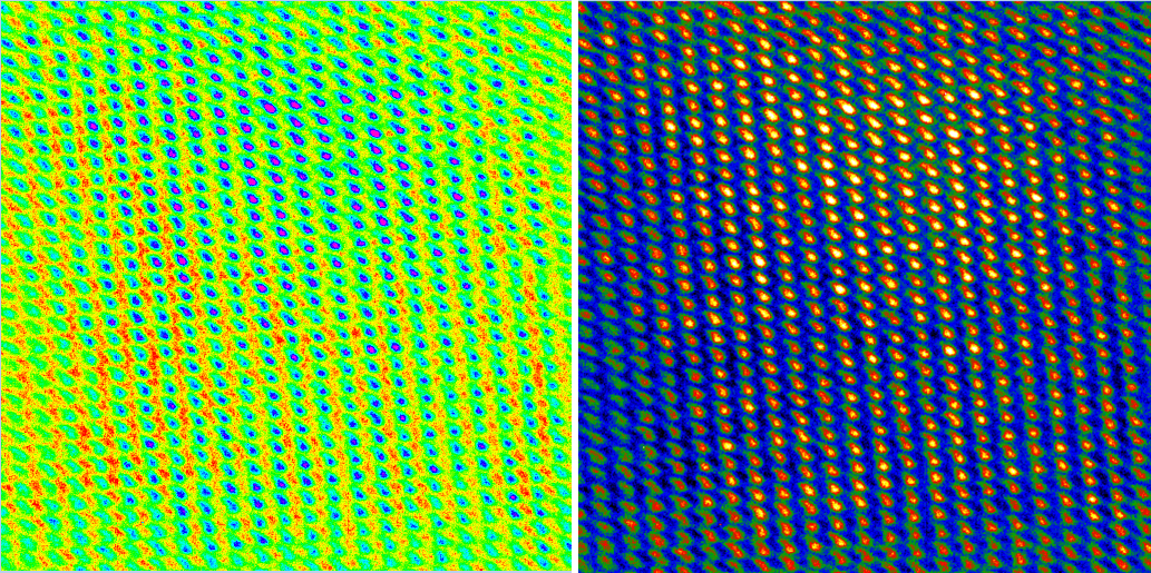PS,如果是高质量的STEM高分辨图像的话,原子柱的衬度和原子序数相关,因此可以将不同衬度的原子映射到不同颜色上从而将原本差异较小的Z衬度用颜色的方式呈现出来,比如下图: