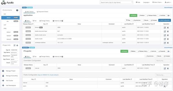 - Apollo自身提供了比较完善的统一配置管理界面,支持多环境、多数据中心配置管理、权限、流程治理等特性。