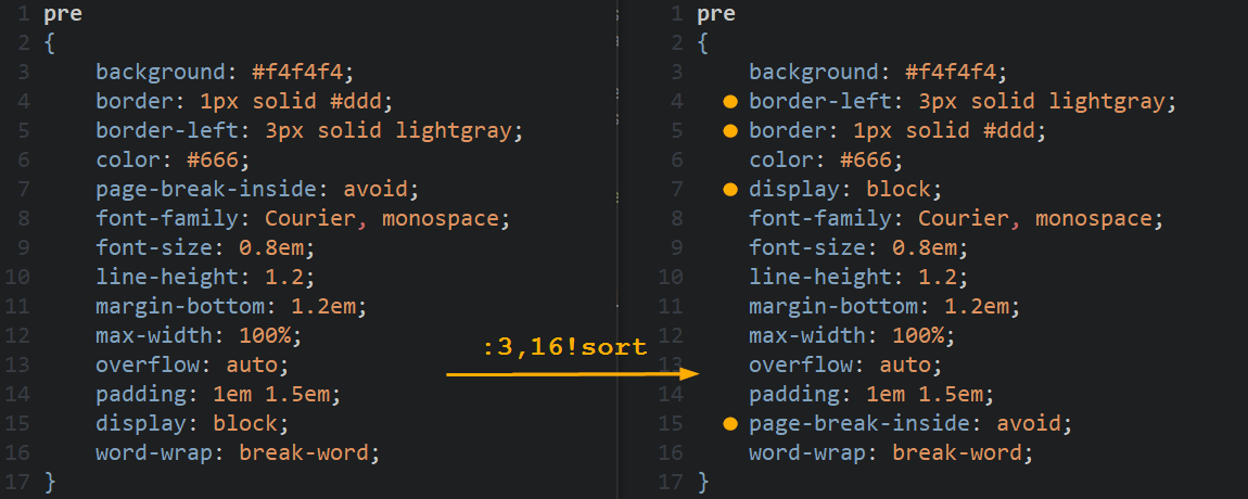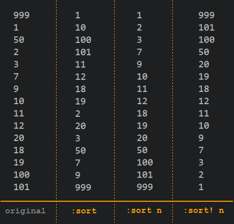 请注意,Vim内置的sort命令与Linux系统下的 !sort 命令并非完全一致。