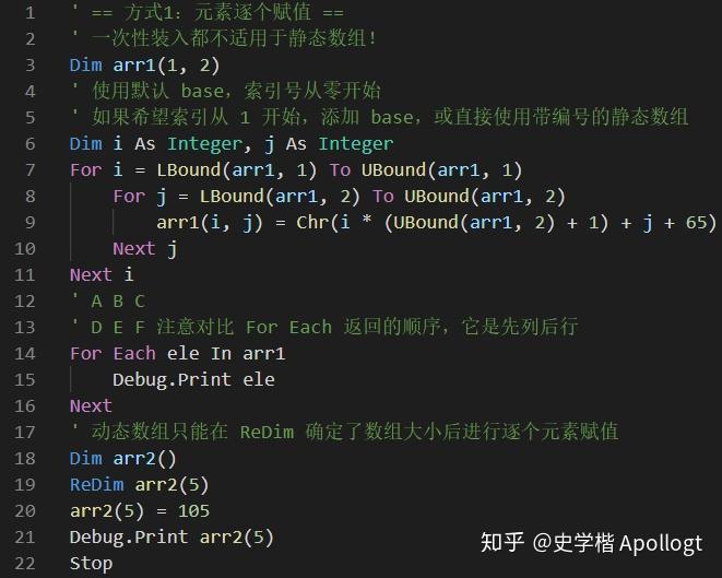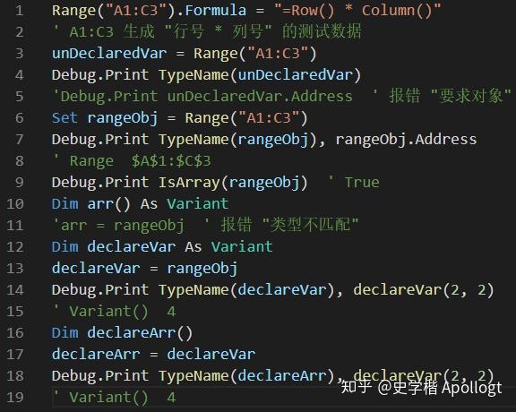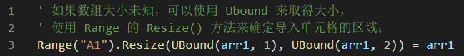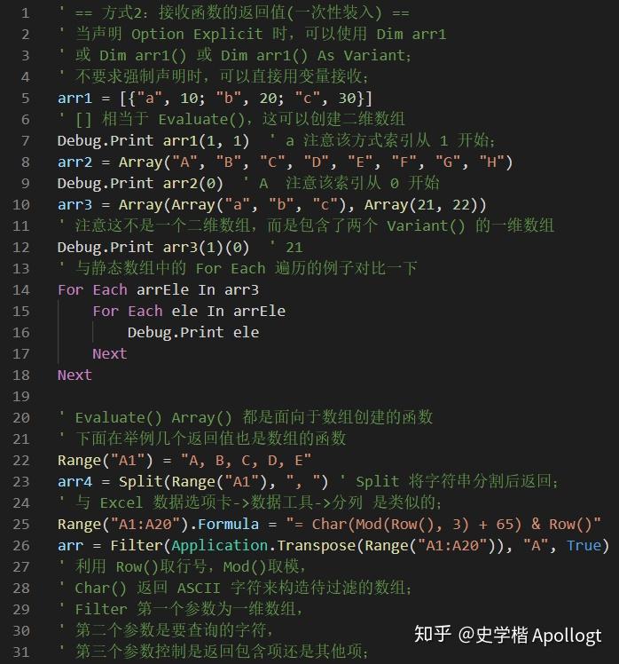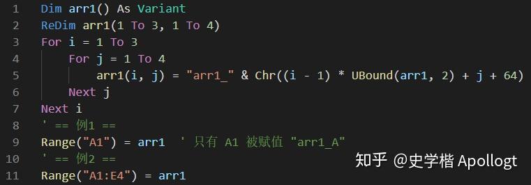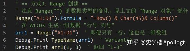 如果这部分看蒙了就暂时过的它吧,后面看过 “Array() 和 Range 对象”,“数组初始化方式3”,“数组导入到单元格区域”,在回过头来理解一下这个部分会更有收获;