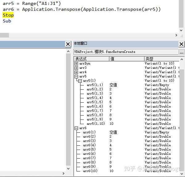 这也就文章开头部分的两次转置的原理;在 VBE 本地窗口看一下结构