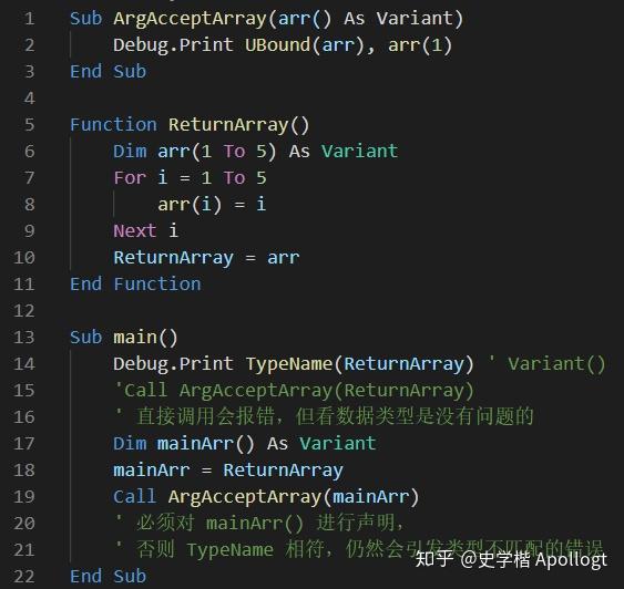 注意 Array() 方法的参数和数据类型是 Variant,其函数的返回值是 Variant();