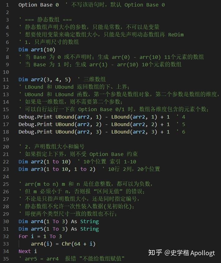 推荐使用不声明的方式,因为部分函数,如 Filter() 的返回值是 String(),Variant 数组使用元素逐个赋值的方式可以接收 String 类型的数据,但 Variant数组 不能接收 String数组 的一次性赋值,如果一定要为数组声明类型则需要声明为 Dim arrDyn() as String ,这点个人觉得挺坑的;