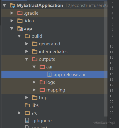 此时再点击右侧的assembleRelease,看到module层的outputs文件夹下生成了.aar文件,
