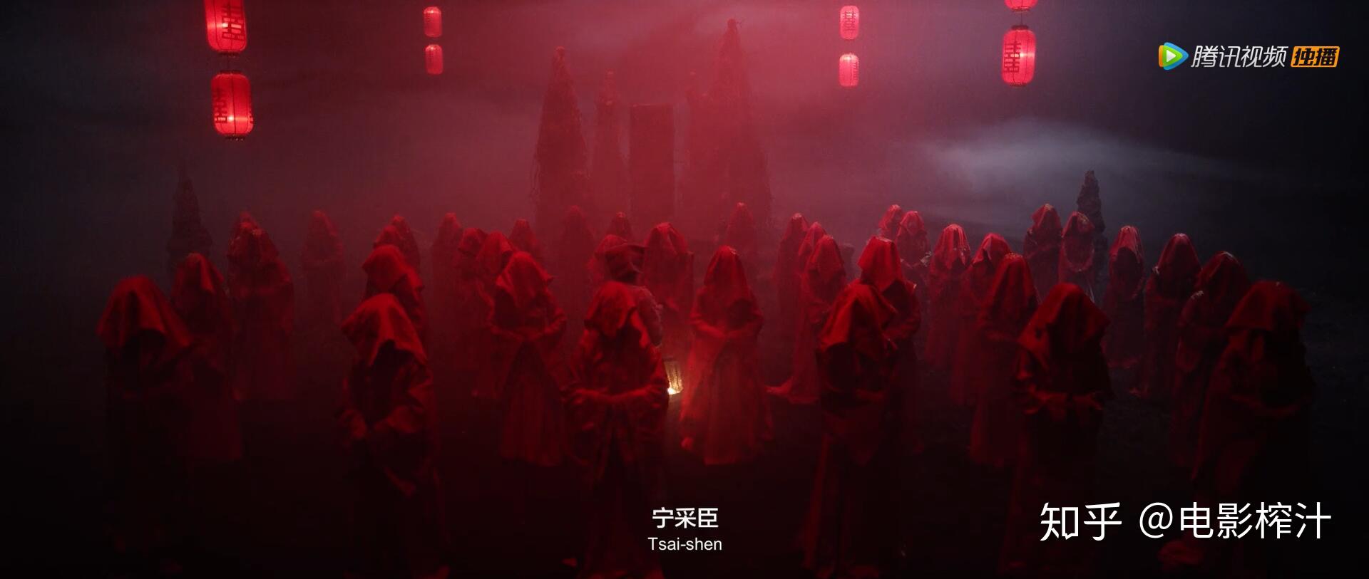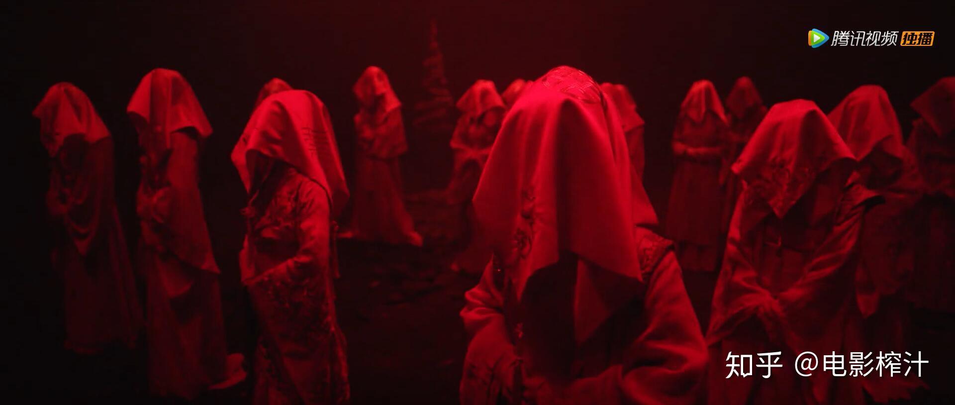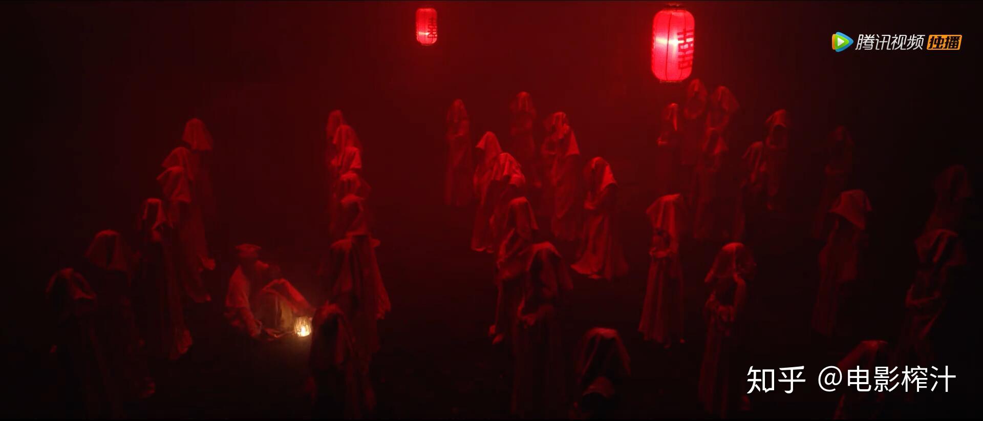 导演和美术使用非常昏暗的布光和纯黑背景,凸显鬼新娘恐怖的血光。