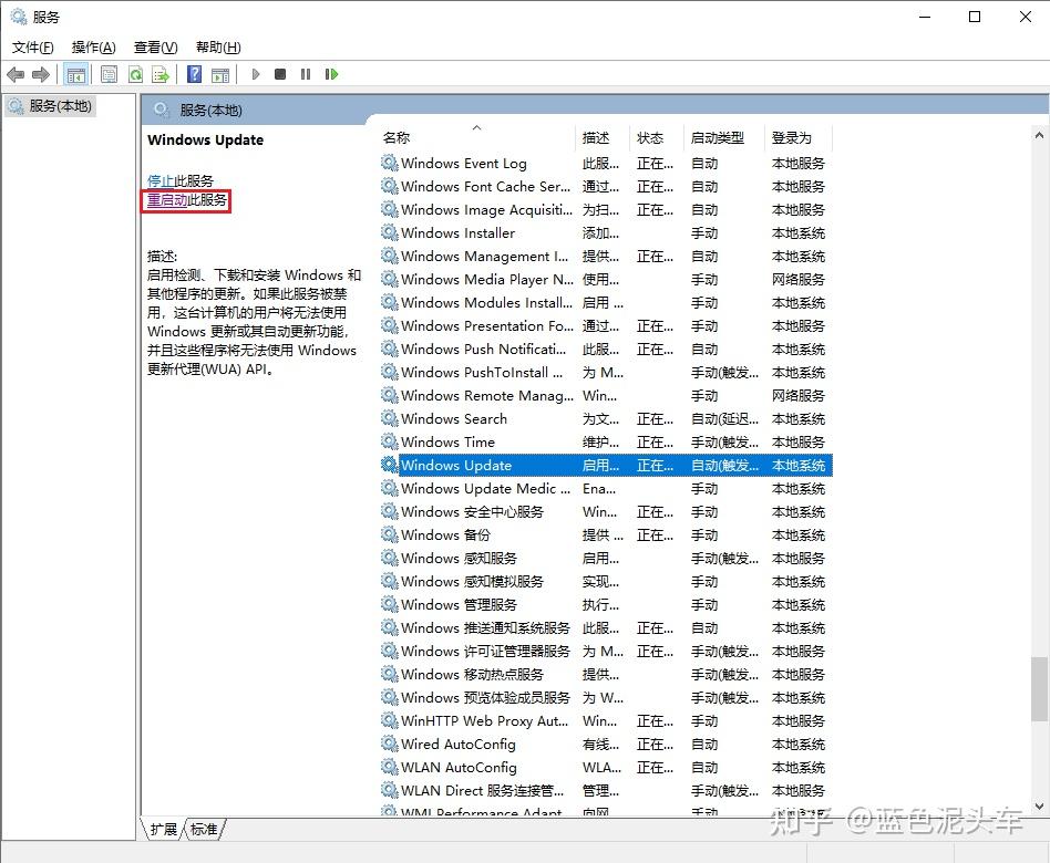按照“第四步”中的操作再次打开“服务”,找到并重启“Windows Update服务”。