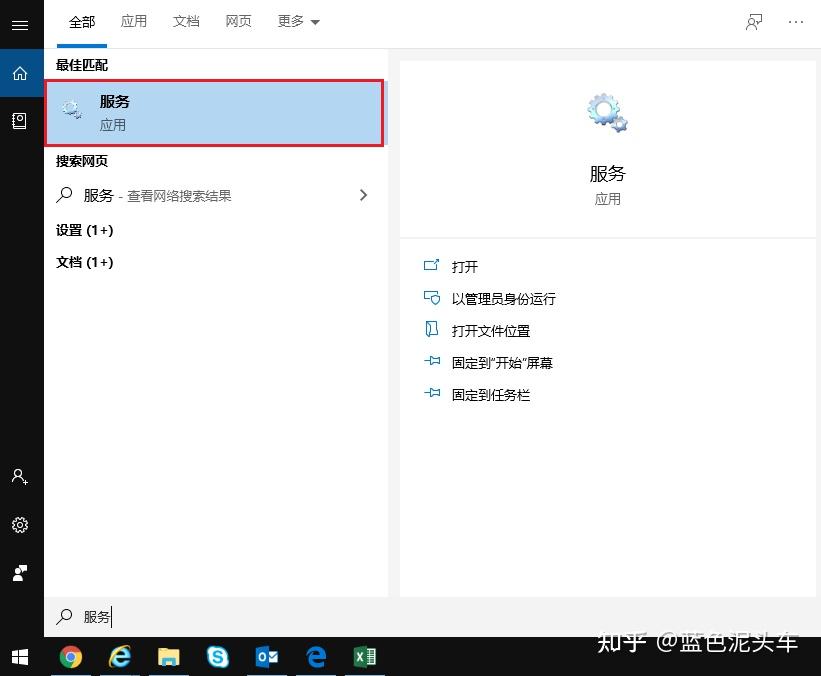 Windows + Q组合键呼出“搜索框”,在“搜索框”中输入“服务”,点击最佳匹配项后进入。
