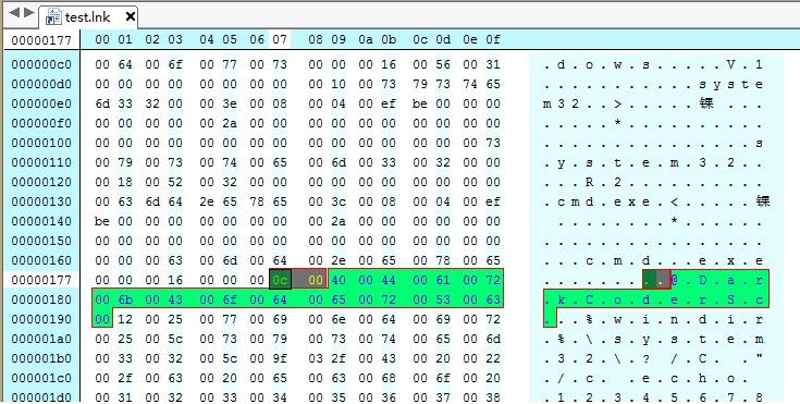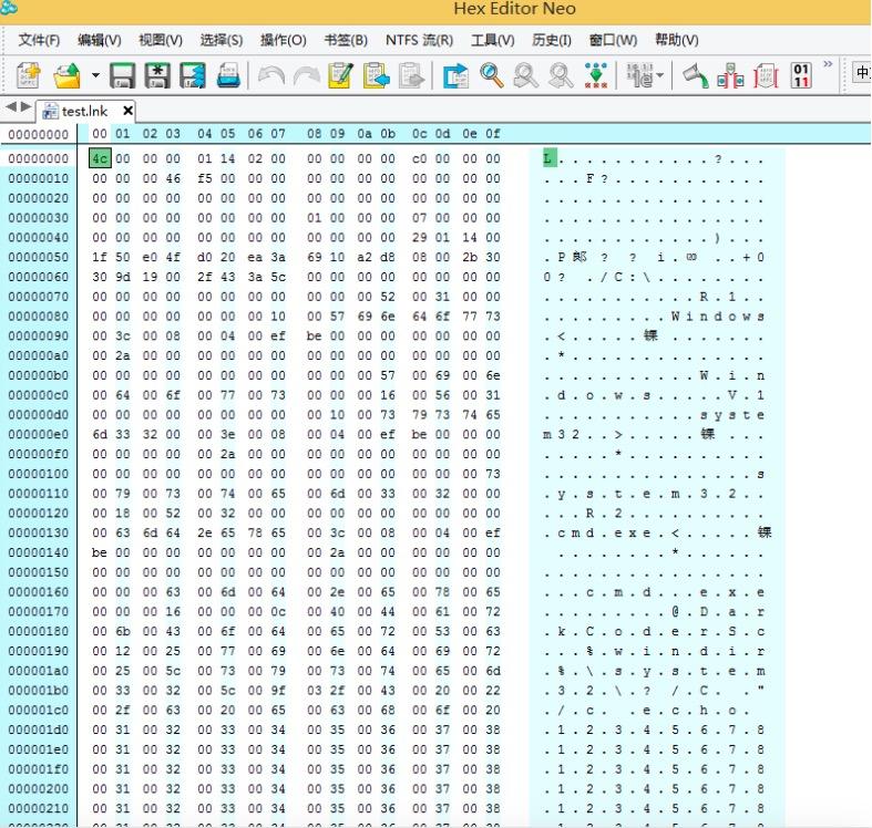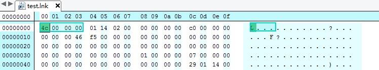 使用16进制编辑器Hex Editor查看lnk文件格式,如图