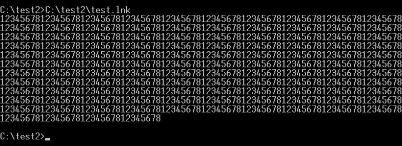 cmd下打开test.lnk,lnk文件的参数正常执行,显示的字符超过超过260个,没有被截断,如图