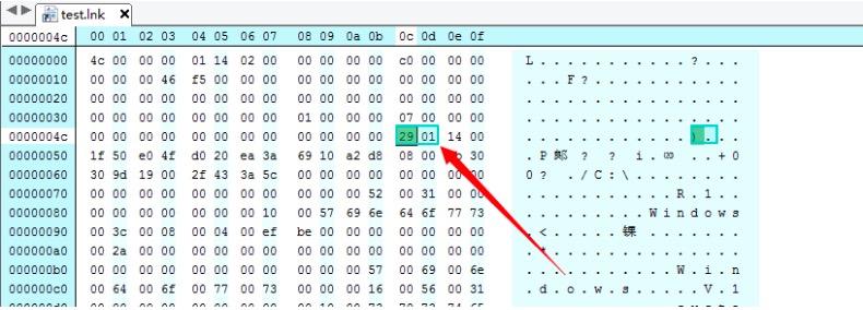 由14h位置得出test.lnk存在shell item id list,所以从4ch开始的第一个段为shell item id list3、shell item id list