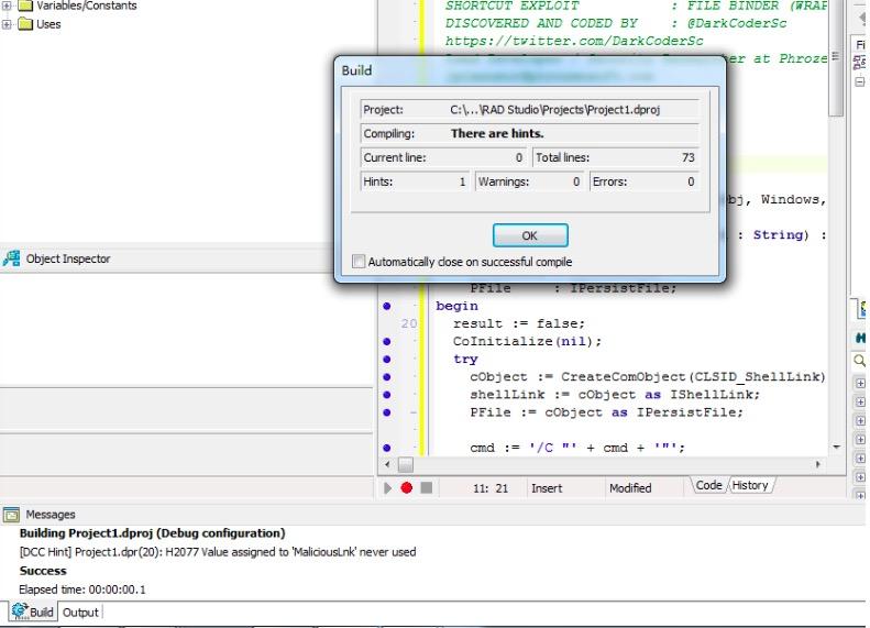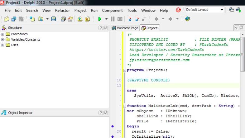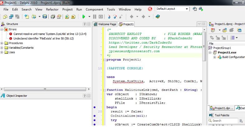 phrozensoft博客中也分享了其他功能的poc,如生成lnk文件的python脚本,本文暂不介绍,只测试其中的Delphi POC