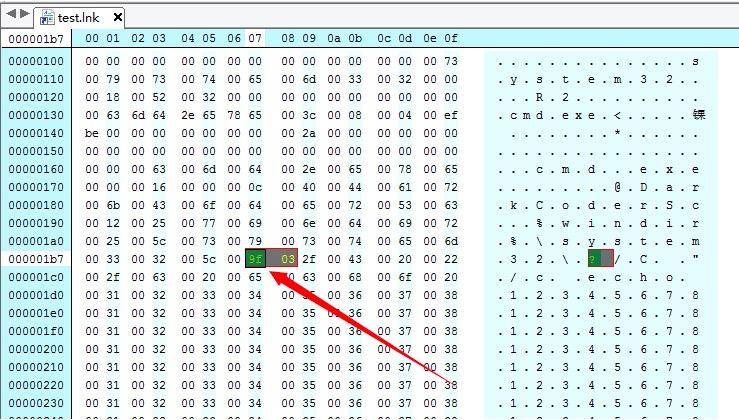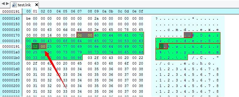 结合Delphi的POC代码和Lnk文件格式,对比正常lnk文件和poc文件差异,发现只有命令行参数长度不同