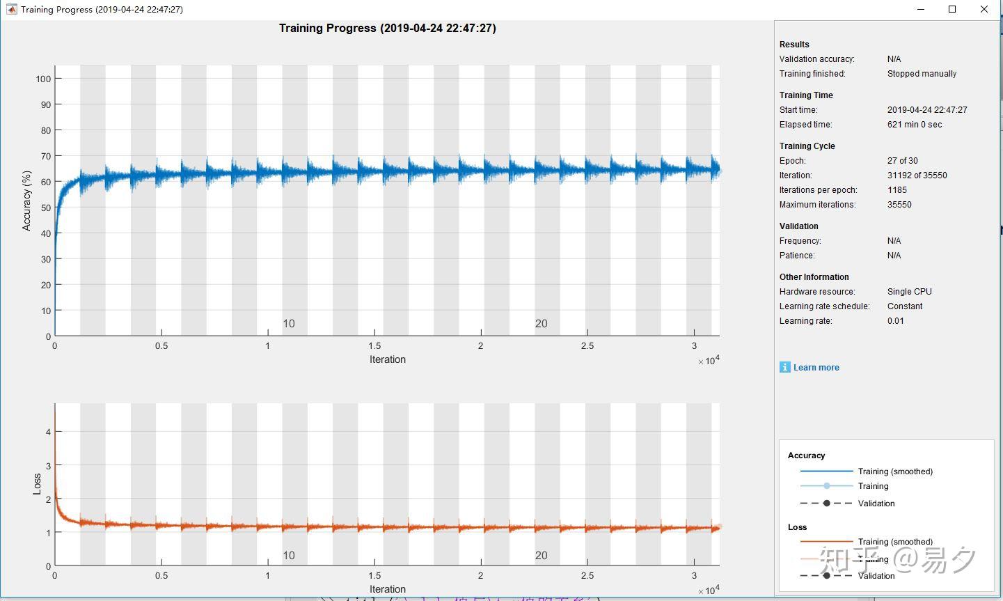 训练了一个晚上,大约10个小时,回来看发现loss和Accuracy基本没变了,就给手动停了。