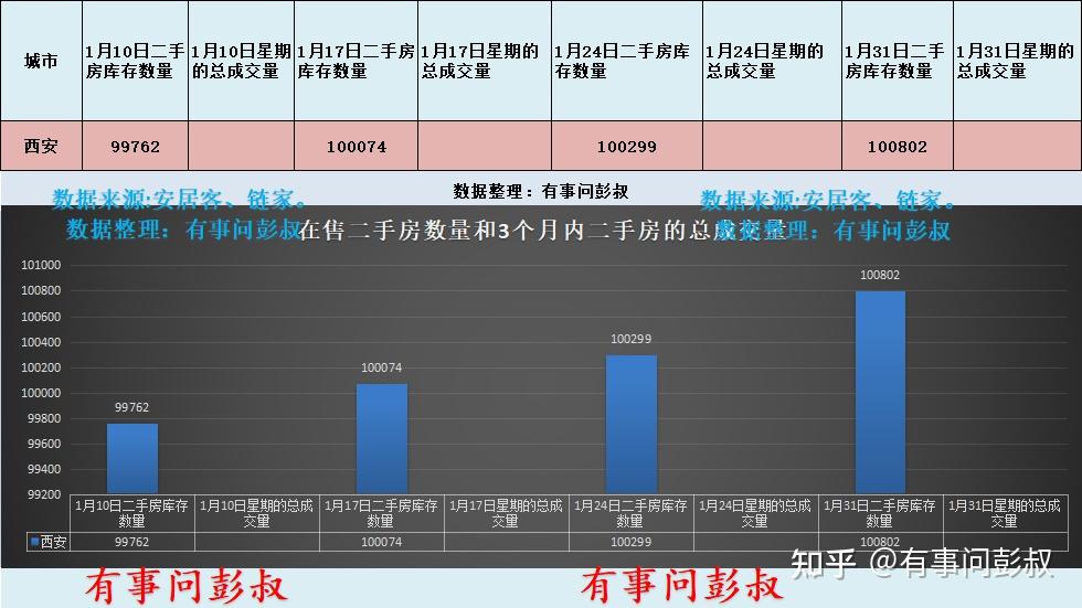 一、西安楼市近三周在售二手房数量100074套,100299套,100802套,持续增加。
