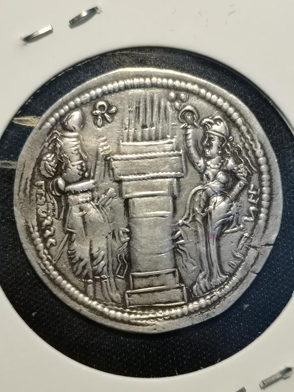 但同时,考虑到第三人肖像与银币背面的女神像有惊人的相似性,且手拿花环的方式更像是在授予国王某种赠礼,因此亦有说法认为这一肖像乃是阿纳希塔女神的形象。如此描绘琐罗亚斯德教神明的范例也可在贾玛斯普(公元497—499年在位)的银币上看到。