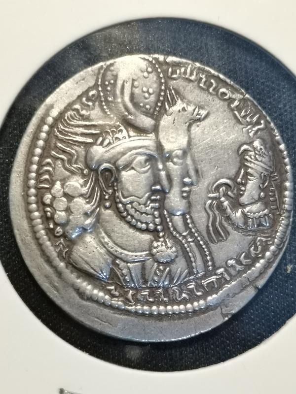 正面铭文应为:玛兹达信仰者,神圣天降的巴赫拉姆,伊朗与非伊朗的众王之王。