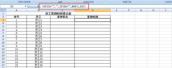 (2)录入公式。在D3单元格输入公式——=IF(C3="","",IF(D3="",NOW(),D3)),并向下复制公式。