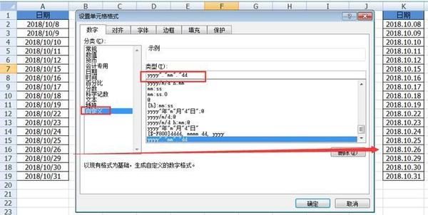 通过Ctrl+1自定义格式,可以快速把日期变成自己想要的格式。记住:在日期格式中,Y代表年,M代表月,D代表日。如下两个例子。