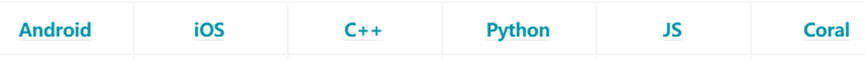 从左到右分别是人脸检测,人脸关键点检测,瞳孔检测、手势识别、身体姿态识别、全身的动作识别,更难的像发丝检测、简单的目标检测、追踪和实时物体控制,3D物体检测和标志标牌检测。然后MediaPipe支持的语言有如下: