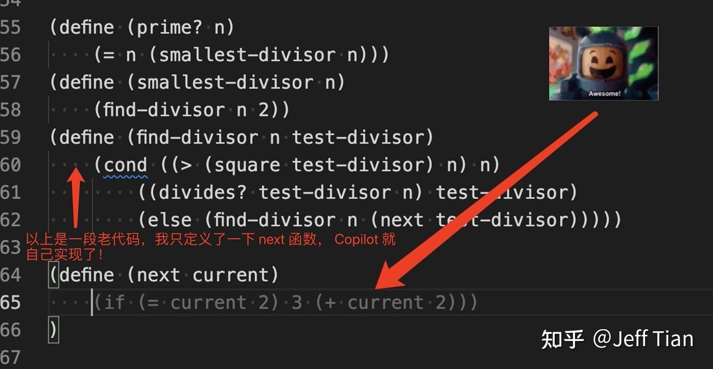 今天用 vscode 写了点很冷门的代码,Scheme 语言,但是这货居然把心里想着的函数名给猜出来了,这智能程度令人发指!