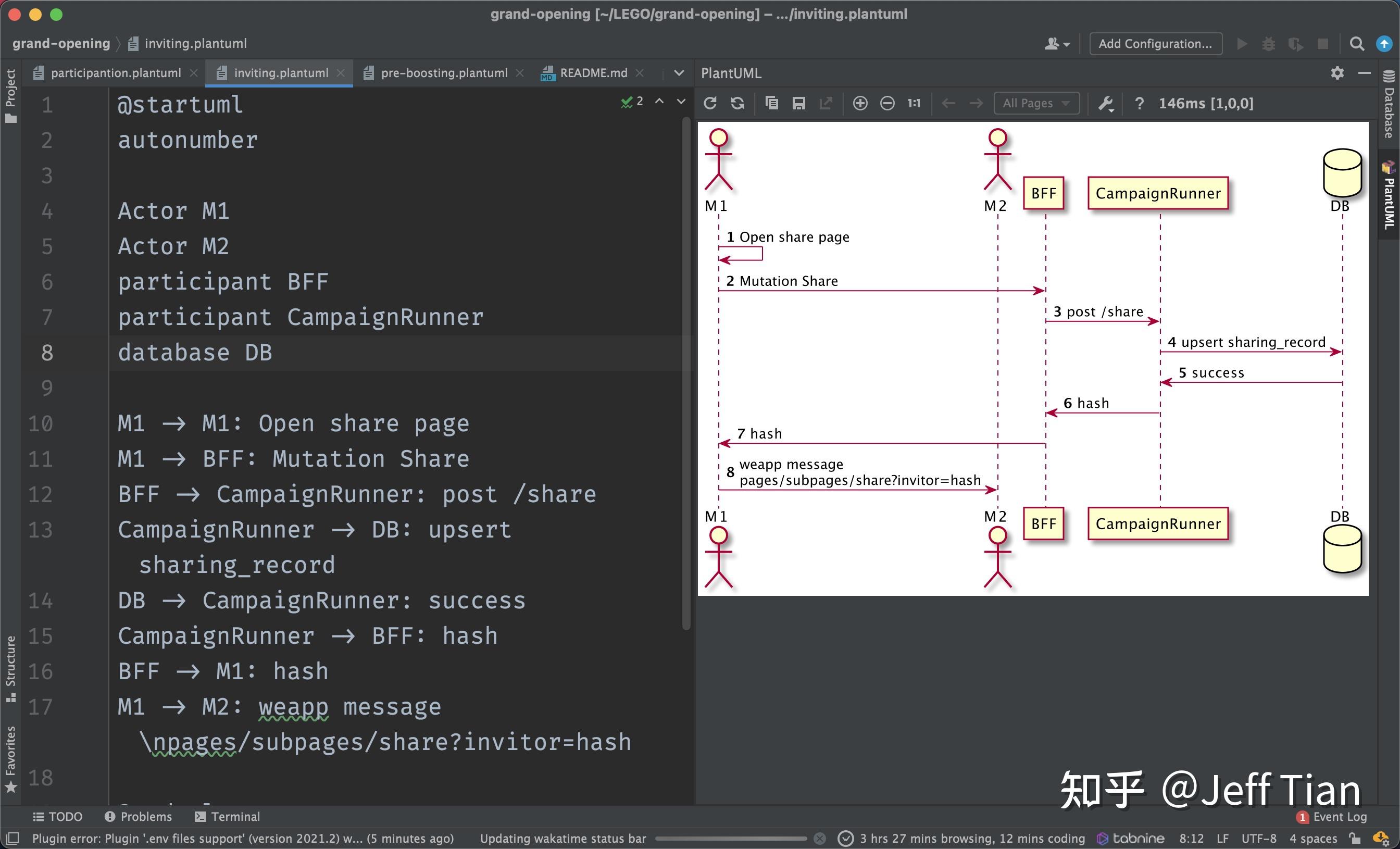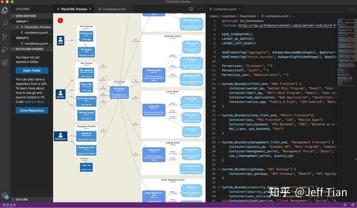 举个例子,plantuml。虽然 WebStorm 也有 plantuml 插件,但是对比一下哈: