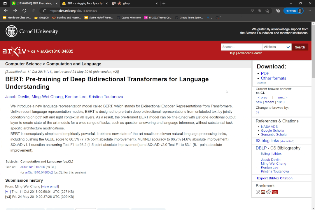查看 BERT 论文的 arXiv 页面的 Demo 标签: