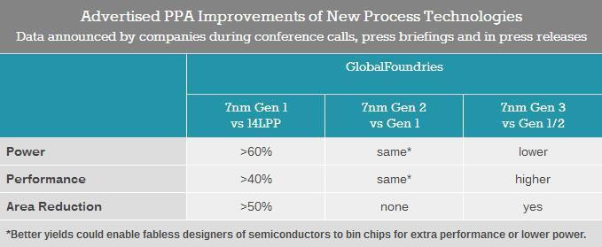 相比之前的14nm LPP制程,7LP制程在功率和晶体管数量相同的前提下,可以带来40%的效率提升,或者在频率和复杂性相同的情况下,将功耗降低60%。但受限于四重光刻这一复杂流程,GF表示根据不同应用场景,7LP只能将芯片功耗降低30~45%。