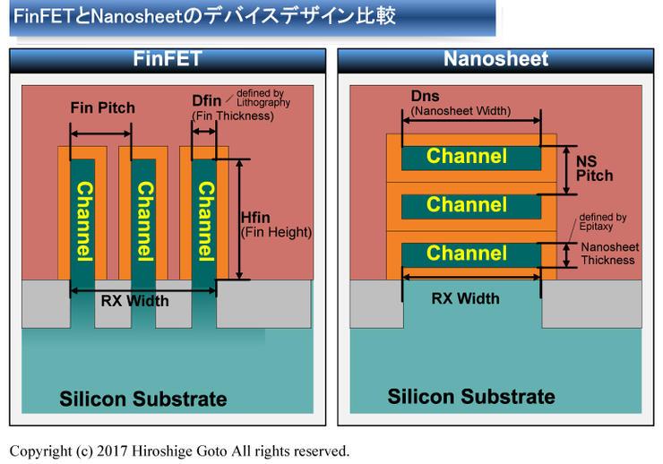 Nanosheet是“IBM联盟”在2017年6月的Symposia on VLSI Technology and Circuits半导体会议上提出的,其晶体管为“将FinFET 90度放倒”的扁平堆栈化结构。