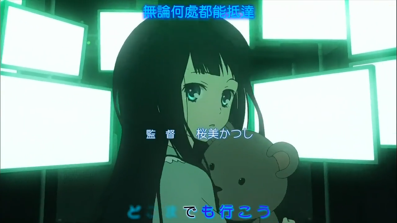托OP动画的福,不算好听的OP曲感觉竟像神曲。这首歌说安静,又节奏感强得像燃曲;说是燃系,又全程煽情,配合动画画面更是不可能将其与热血联系起来。ED也是曲一般而动画较好。《刀剑神域》风格的英文单词飘落画面充满了神秘感,与OP首尾呼应。
