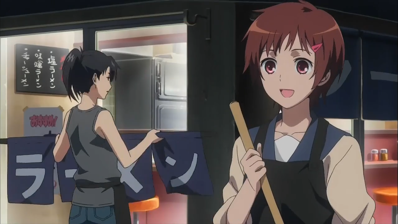 行至结尾,众人分三个镜头出现。前两个镜头非常短,给人的感觉就是特别地有力度。因为镜头短,各镜中几乎没有动作,仅存的小动作都经过了认真设计——从这两个镜头既完整又停得恰到好处可见一斑。而最后一个女主的中镜头,制作组竟然通过补帧使她做出了有点僵硬的奇怪动作,可因为她是萝莉,这反而大大增加了其萌度。