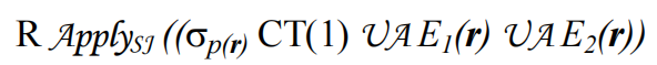 - 上述公式中Apply的右表达式中,三个条件取union all,表示只要有1个表达式为TRUE,则返回R中的一行
