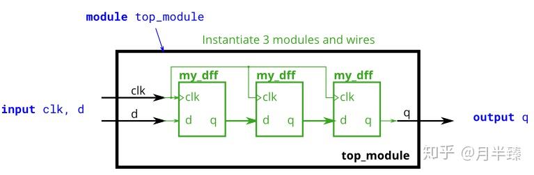 // 对my_dff进行了三次实例化,用了三个不用的名字 (d1, d2, and d3).