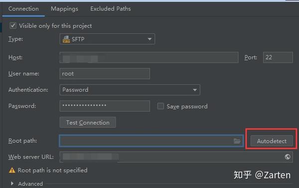 填写相应的服务器信息,然后点击“Autodetect”自动检测服务器的根目录