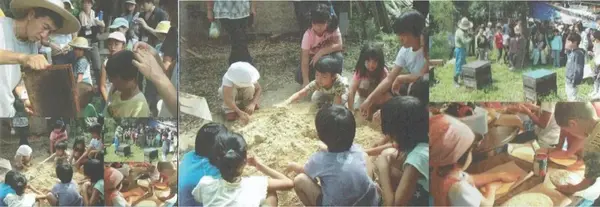 雨读晴耕村舍连结周围的村民与孩童进行蜜蜂观察,米糠制作等交流活动。图片来源|農と都市近郊の田園暮らし