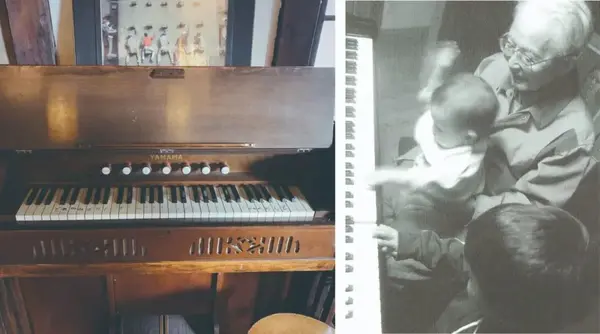 1998年拍摄的吉田文武老师,左图为当时弹奏的Yamaha钢琴。左图图片来源|阿希Yui