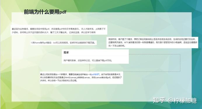 前后端分离的技术架构畅行,让专业的人做专业的事情,开发更加高效畅通,因此在前端生成和展示PDF文件的需求也是比较普遍,我们总结一下PDF的常见应用场景: