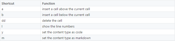 当单元左侧的垂直条显示其为命令状态(蓝色)时,就可以使用下面这些快捷键了。
