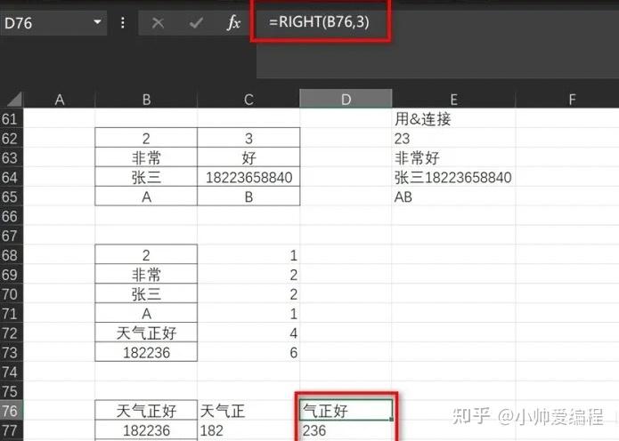 RIGHT函数和LEFT函数用法一样,指的是从右边第一个字符开始提取字符